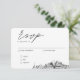 Mariage de script minimaliste classique carte de boîtier RSVP personnalisée avec vos informations. Entrez l'outil de conception Zazzle pour une personnalisation plus poussée, comme l'emplacement de texte ou pour ajouter une quatrième option de repas. Assurez-vous de comparer les différents types de papier pour sélectionner votre texture préférée et de vérifier la collection complète pour acheter les enveloppes de publipostage correspondantes.