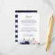 Cette carte moderne de détails de mariage floral nautique est parfaite pour une croisière ou un mariage sur la plage. Le design fantaisiste présente des fleurs d'aquarelle rose pâle et bleu marine aux accents d'étoile d'or, donnant une ambiance de plage.