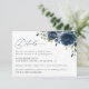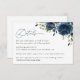 Complétez votre papeterie mariage avec cette carte de détails élégante. Le design présente des fleurs d'aquarelle bleu marine et de la verdure sur l'arrière - plan blanc.