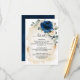 Carte de détails de mariage florale bleu marine foncé avec un élégant bouquet de bleu marine, bleu roi, blanc, or, champagne ivoire, rose couleur rose, hydrangea, boutons de fleurs de renoncule et feuilles d'eucalyptus vert sauge et aquarelle élégante avec cadre géométrique à paillettes rondes. N'hésitez pas à me contacter pour toute aide de personnalisation ou si vous avez besoin d'un autre produit avec ce design.