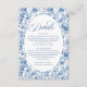 Elevate your celebration stationery with this French Toile de Jouy roses details card in elegant navy blue, royal blue, dusty blue, and deep blue tones. Featuring delicate floral artwork and refined script typography, this enclosure card or insert adds timeless charm to your suite. Perfect for sharing event information in a coordinated, sophisticated style.