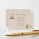 This adorable baby shower insert card has a sweet poem asking your guests to bring Books for Baby as a special gift. The design features a whimsical teddy bear reading a book and a stack of childrens books. The background has a tan and white lattice work pattern. The reverse side has the same tan and white lattice pattern and a teddy bear sitting reading a book.