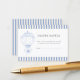 Celebrate your upcoming arrival with this charming diaper raffle enclosure card. Featuring a sweet blue hot air balloon graphic set against a classic blue and cream striped border, this card is perfect for a baby shower. The text invites guests to 'Ring a Pack of Diapers Any Size for a Chance to Win a Special Prize' and includes a space for the guest's name. This design adds a whimsical touch to your baby shower invitations, encouraging guests to participate in a fun tradition.