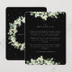 Une carte d'invitation de réception de mariage noire et plate avec des rameaux de fruits des neiges et d'eucalyptus peints à la main sur le devant et une couronne au dos de la carte. Tout le texte est entièrement modifiable et les points dispersés sur le devant et le dos peuvent être supprimés avant la commande si vous le souhaitez. Cette carte est disponible avec des motifs botaniques alternatifs, dans un format paysage et dans différentes couleurs. Veuillez consulter la Collection dans ma boutique pour voir toutes les options et les articles coordonnés.