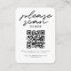 Un simple minimaliste arrière - plan blanc et noir texte de script "s'il vous plaît scanner" mariage RSVP avec QR Code pour encourager RSVP par téléphone ou site de mariage.