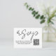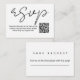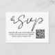 Carte de boîtier rsvp moderne noir et blanc. Carte RSVP minimaliste avec code QR et demande de chanson. Police de calligraphie simple sur arrière - plan noir.