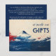 "Note sur les cadeaux" Carte de boîtier - Harmonie japonaise avec la collection Fuji Invitation vos invités dans un monde d'élégance tranquille avec notre carte de boîtier "Note sur les cadeaux" de la collection Japonesque Harmonie avec Fuji. Cette carte horizontale équilibre magnifiquement l'art culturel et le message sincère, offrant aux couples une façon raffinée et significative de communiquer leurs préférences en matière de cadeaux. Conception avant : Conduite à un paysage serein de style aquarelle avec l'emblématique Mont Fuji surplombant une mer d'ondes inondées, la carte évoque un sentiment de calme, de respect et de beauté naturelle. De subtiles éclaboussures de rouge apportent une touche de peinture, tandis que l'écriture élégante et la typographie audacieuse du titre "une note sur GIFTS" apportent un contraste moderne à l'esthétique traditionnelle d'inspiration japonaise. Retour Message : Le revers maintient le thème bleu profond, fournissant un cadre propre et minimal pour le message du couple. Ici, vous pouvez express votre gratitude et guider doucement les invités vers votre option de don préférée - que ce soit en contribuant à un fonds de lune de miel ou en choisissant un cadeau physique réfléchi. Le langage est chaleureux et inclusif, soulignant que la présence des invités est le cadeau le plus apprécié de tous. Cette carte boîtier allie un sentiment réfléchi et un design intemporel, ce qui en fait un complément parfait à votre suite mariage. L'Harmonie japonaise avec la collection Fuji reflète l'esprit d'élégance et d'intention, afin que vos invités se sentent honorés et appréciés.