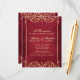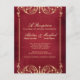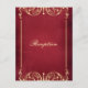 Ces cartes de réception de mariage, dans des tons époustouflants de doré pâle resplendissant et de rouge riche, sont un mélange élégant de sensibilités Art nouveau et victorienne, avec un cadre sophistiqué de volutes charmantes et d'arabesques délicates, et un texte en écriture élégante et en polices serif et bloc classiques. Le texte de la réception est entièrement personnalisable - personnalisez avec vos propres informations ! Celles-ci sont parfaites pour être utilisées comme cartes encartées de réception ou comme invitations de réception uniquement.