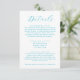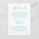 Assurez-vous que vos invités ont toutes les informations essentielles avec cette élégante carte de détails mariage aqua blue Ocean Waves. Idéal pour les mariages à la plage, cette carte d'enceinte comprend l'hébergement, le transport et les détails de l'hôtel pour faciliter la planification de votre voyage. Un code QR au verso vous permet d'accéder à votre site Web mariage pour plus d'informations. Idéal pour les célébrations au Ritz-Carlton, Amelia Island ; Casa Marina, Key West ; The Cloister, Sea Island ; The Ocean House, Rhode Island ; Montage Laguna Beach ; The Don CeSar, St. Pete Beach ; et Kiawah Island Resort. Conçu par Concertina Press.