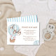 Ce charmant baby shower "Oh Baby" pour bébé présente un adorable éléphant flottant dans une montgolfière. La carte utilise un mélange de polices script, serif et sans-serif pour un aspect moderne et élégant. Sur le dos se trouvent les bandes d'aquarelle bleue. D'autres articles correspondants sont également disponibles.