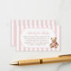 Une touche intemporelle pour vos invitations à la douche pour bébé. Ce livre pour carte bébé présente d’élégantes rayures roses, un ours en peluche vintage et une typographie classique, invitant les clients à contribuer à la construction de la première bibliothèque de bébé avec un livre chéri.
