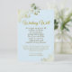 Cette belle carte mariage est une façon de demander à vos invités de l'argent ou de l'argent en guise de cadeaux. L'élégant design bleu poudreuse et or présente des boucles et des tourbillons en faux feuille dorés décoratifs dans les coins avec des lettres de script fantaisie. Le titre se lit "Wishing Well" avec un poème mignon : Comme nous commençons notre nouvelle vie en tant que M. & Mme Nous avons déjà une maison pleine de plats Mais si vous voulez nous donner un cadeau Un cadeau de quelques espèces serait si agréable! Il y a de l'espace en bas pour une note et une signature courtes.