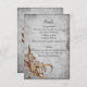 Cette carte de détails de mariage rustique et élégante présente des fleurs dorées sur un arrière - plan de parchemin gris foncé et antique. Faites savoir à vos invités mariages toutes les informations importantes qu'ils auront besoin de connaître pour votre jour de mariage avec cette charmante carte d'enceinte.