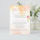 Invitation vos invités à une heure de cocktail spéciale et à la réception du dîner, leur faire connaître les tarifs spéciaux d'hébergement, les informer de votre site mariage, utiliser cette carte pour des informations importantes. Lavage à l'aquarelle tropicale orange. Typographie délicate en rose chaud (customisez ce choix de couleur si vous le souhaitez). Accentué par une fleur de frénésie monocolorée, il renverse la texture du lavage de peinture.
