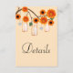 Carte D'accompagnement Orange Flowers Mason Jars Détails du Mariage