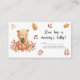 Célébrez avec cette soirée baby shower à thème ours en peluche ! Aquarelle mignon ours en peluche avec un citrouille d'automne dans ses pattes est assis sur le feuillage d'automne. Au verso de la carte se trouvent les feuilles d'automne. Éléments correspondants disponibles.