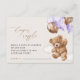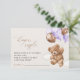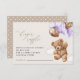 Ajoutez une touche personnelle à votre fête de baby shower avec ces objets de fête élégants et mémorables ! Le design présente un ours en peluche avec des ballons violets sur un arrière - plan beige.