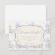 Un design doux et vintage avec des nœuds bleus délicats, des détails rayés doux et de charmantes illustrations de jardin de myrtilles. L'illustration de style toile avec des animaux adorables et des paniers de fruits crée une atmosphère de conte de fées classique dans une palette de bleu poudre doux. Le cadre central orné ajoute de l'élégance tout en gardant l'ensemble léger, raffiné et intemporel. Parfait pour une baby shower avec un thème de jardin doux et une touche de charme traditionnel.