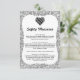 Carte D'accompagnement Paillettes argentées Cœur noir et blanc Mesures de