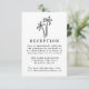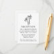 Guidez vos invités avec cette élégante carte d'enceinte de réception, avec des palmiers noirs dessinés à la main au sommet d'un arrière - plan blanc. Parfait pour les mariages tropicaux, côtiers ou de destination, ce design minimaliste offre de l'espace pour les détails de la réception de mariage du couple, y compris le lieu, l'heure et des informations supplémentaires. Un ajout chic et pratique à votre suite de faire-part de mariage.