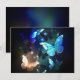 Fabuleux papillon de nuit bleu et jaune lumineux sur fond sombre.