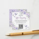 Cartes de clôture de registre de cadeaux de code QR carré floral violet élégant. Personnalisez-les facilement et rapidement, cliquez simplement sur le bouton personnaliser davantage pour modifier les textes, changer les polices et les couleurs des polices. Caractéristiques de belles fleurs de lavande violette aquarelle, papillons et éléments argentés. Articles assortis disponibles en magasin. (c) Somerset Fine Paperie