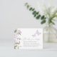 Demandez un livre pour votre petit avec ce bel encart d'invitation, avec un papillon aquarelle, des fleurs violettes et de la verdure.