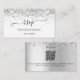 Sur le devant : un arrière - plan blanc décoré de parties scintillant faux argenté, brille. Personnalisez et ajoutez vos noms, URL du site mariage pour votre propre code QR et votre texte. Dos : faux arrière - plan argent et parties scintillant, pétillant.