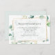 Carte d'hébergement mariage en aquarelle Woodland eucalyptus avec cadre géométrique doré personnalisable selon vos spécifications.