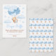 Cette jolie carte d'enclos à couche d'aquarelle fantaisie présente un adorable ours dans une montgolfière bleue avec nuages et étoiles. Le texte combine écriture manuscrite et polices sans serif pour un look élégant et moderne. Un baby shower à thème pour les ours.