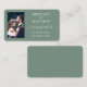 Carte d'insertion de registre de mariage à script calligraphique moderne tendance. Photo sur le devant. Vert Sauge