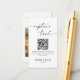 Présentation de notre "Carte de partage de photos de mariage à code QR personnalisé" – un moyen personnalisé et pratique d'encourager les invités à partager leurs photos de votre jour spécial. Cette carte comporte un code QR personnalisé que les invités peuvent scanner pour accéder facilement à votre plateforme de partage de photos de mariage. Personnalisez chaque détail pour rendre cette carte unique. Design simple en noir et blanc que vous pouvez personnaliser avec un message à côté du code QR. Le code QR personnalisé permet aux invités de partager facilement leurs photos, vous assurant de capturer chaque moment précieux de votre célébration. Parfait pour améliorer votre expérience de mariage et capturer des souvenirs, cette carte de partage de photos allie avec élégance la fonctionnalité. Faites une déclaration avec cette carte conçue de manière unique qui ajoute une touche de commodité à vos efforts de partage de photos de mariage.