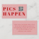 Modern soft blush, red bold font, wedding "Pics Happen" QR Code, Photo-Gallery-Website, QR-Code, Enclosure Card. Personalized with your names, photo-gallery-website, scannable QR code and message to keep your friends and family up to date about your upcoming special day.