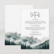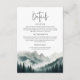 Capturez la majesté silencieuse des montagnes avec la carte d'accompagnement à peinture à l'aquarelle Forêt Brumeuse des Pics Verdoyants. Ce design présente un paysage peint à la main à couper le souffle, avec des conifères imposants et des sommets arrondis enveloppés dans une brume douce et éthérée. Les verts profonds de la forêt et les teintes fumées créent une atmosphère sombre et organique parfaite pour un mariage de destination en montagne ou une cérémonie intime en forêt.