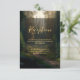 Elégant pin vert et or enchantée forêt mariage détails de réception carte d'enceinte. Personnalisez-le avec vos propres détails pour en faire votre propre envoi à vos amis et votre famille.