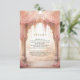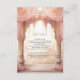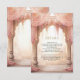 Amaze your guests with this elegant Indian wedding details enclosure card featuring beautiful arches decorated with curtains and pink flowers.