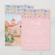 This destination wedding details enclosure card features painted artwork of papel picado on the top edge. On the back is a Mexican church surrounded by tropical flowers. All the important wedding details can be personalized. Colors include green, pink, white and coral.