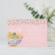This destination wedding details enclosure card features painted artwork of papel picado on the top edge and a pink suitcase in the lower corner. On the back is a Mexican hacienda surrounded by tropical flowers. All the important wedding details can be personalized. Colors include green, pink, white and coral.