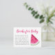 Livres de baby shower à thème pour la carte bébé avec aquarelle illustrant une pastèque rose. Cette carte demande aux clients d'apporter des livres au lieu d'une carte. Envoyez ceci avec la carte d'invitation. Idéal pour la douche d'été d'une fille.