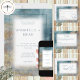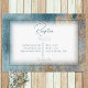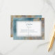 Ce design de carte de réception de mariage comprend une plage abstraite bleue et dorée et un arrière - plan d'eau, avec du texte dans une zone de texte floue vaporisée de mer douce. Moderne et unique, il est parfait pour un mariage de plage ou de bord de mer. Créé par Simply Farmhouse Press, il fait partie de la Modern Beach Abstrait Mariage Suite.
