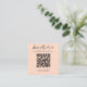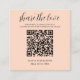 Peach et black partagent les cartes d'amour QR Code. Placez ces petites cartes sur les tables de réception de votre mariage afin que les invités puissent les scanner pour télécharger les photos qu'ils ont prises à votre réception de mariage sur votre album ou sur les médias sociaux. Pour générer un nouveau code QR sur la conception, ajoutez l'URL de votre album de mariage en ligne ou de votre pseudo média social dans la zone fournie, en utilisant la fonction "personnaliser". Un tout nouveau code QR sera alors ajouté à la conception.