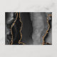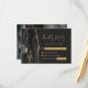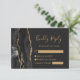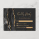 Le bord gauche de cette élégante carte de mariage moderne RSVP est doté d'une bordure en aquarelle noire ornée d'une parties scintillant en faux or. Le texte est en écriture manuscrite de couleur or et la police de caractères cuivre sur un arrière - plan non noir. L'envers est assorti d'un design d'agate noir et or.