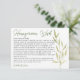 Élevez votre présentation de mariage avec cette carte d'accompagnement de puits à souhaits moderne à l'aquarelle avec eucalyptus. Le mélange sophistiqué de feuilles d'eucalyptus vertes crée un arrière-plan serein pour partager vos vœux sincères. Idéal pour exprimer votre gratitude et guider vos invités vers le puits à souhaits du mariage, cette carte d'accompagnement ajoute une touche d'élégance à votre journée spéciale.
