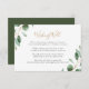 Conçu pour se coordonner avec notre collection de mariage Moody Greenery, cette carte de Puits de souhaits personnalisable présente des feuilles de eucalyptus à l'aquarelle avec un texte doré et gris. Pour apporter des modifications avancées, veuillez sélectionner l'option «Cliquez pour personnaliser davantage» sous Personnaliser ce modèle.