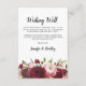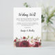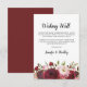 Carte de puits de vœux de mariage rustique élégant avec un fond blanc uni qui peut être changé en n'importe quelle couleur, un ensemble de fleurs de couleur marsala rouge, burgundy et rose blush en aquarelle, et un modèle d'informations de mariage moderne. ==================================================================================== Pour une personnalisation plus poussée, veuillez cliquer sur le bouton "Personnaliser" pour modifier ce modèle. Tous les styles de texte, les couleurs et les tailles peuvent être modifiés pour répondre à vos besoins. Vous trouverez d'autres articles de mariage assortis dans ma boutique www.zazzle.com/special_stationery, mais si vous ne trouvez pas ce que vous cherchez, veuillez me contacter.