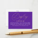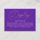Display shower purple and gold baby shower request card