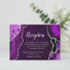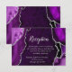 Complete your wedding stationery suite with this elegant reception enclosure card featuring a purple agate marble design accented with luxurious silver details. The bold geode-inspired background creates a dramatic and sophisticated look, perfect for fall and winter weddings, formal celebrations, or glamorous evening events. Designed to provide guests with reception information such as cocktails, dinner, and dancing, this enclosure card pairs beautifully with matching invitations. The clean, modern typography keeps your details easy to read while complementing the organic agate texture. Easily personalize all text to suit your wedding details and create a seamless and stylish experience for your guests.