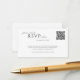 Élégant script de typographie chic minimaliste noir et blanc budget en ligne mini-taille carte rsvp boîtier avec scannage code QR sur le site Web et les noms de mariée et marié premier monogramme sur le côté arrière. +++++++ Convient pour les cérémonies et réceptions mariages à la mode du printemps, de l'été, de l'automne ou de l'hiver.