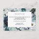 Conçue pour se coordonner avec notre collection de mariage floral Something Blue, cette élégante carte d'encart de réception botanique comporte un cadre de fleurs peintes à l'aquarelle et de plumes dans des tons élégants de bleu, bleu poussiéreux, ivoire et blanc.