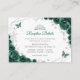 Emerald green silver and white floral Quinceanera reception details enclosure cards. Features, script font, silver butterflies, watercolor roses and tiara. Perfect for an elegant princess style glam celebration. Personalize with your own details.